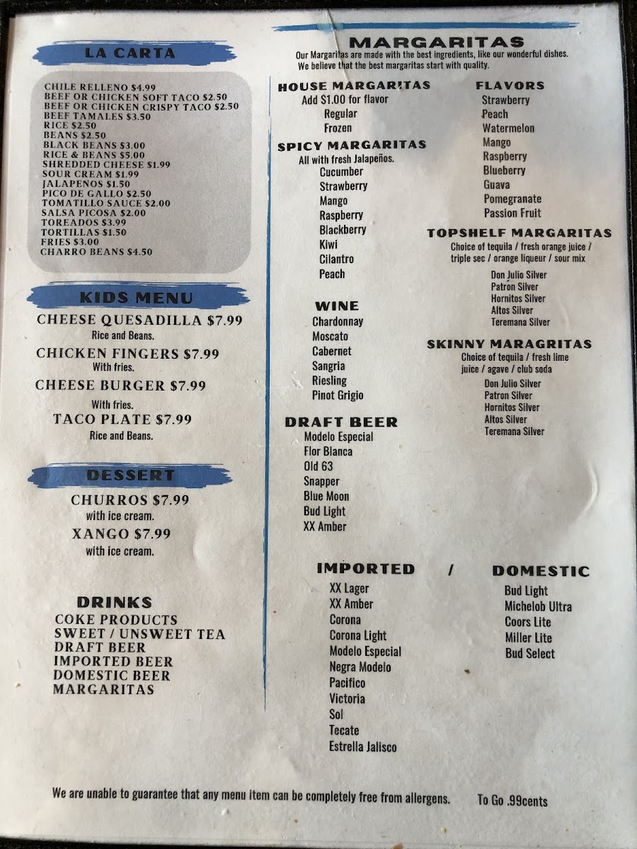 Drink enthusiasts won’t be disappointed either; whether you prefer a classic Coke product or the refreshing touch of sweet or unsweetened tea — all are available for just US$3.00. Don’t miss out on their cocktails; customers rave about the peach margarita and cilantro lime margarita, truly elevating the meal experience.